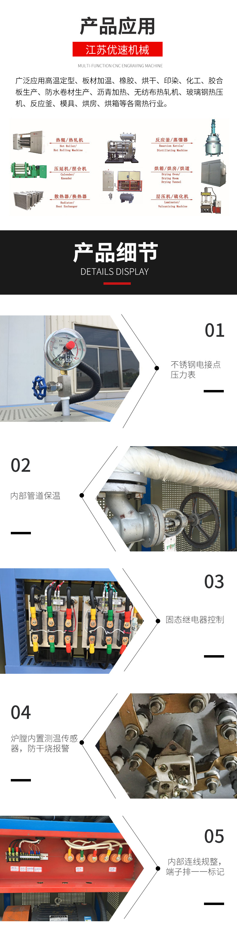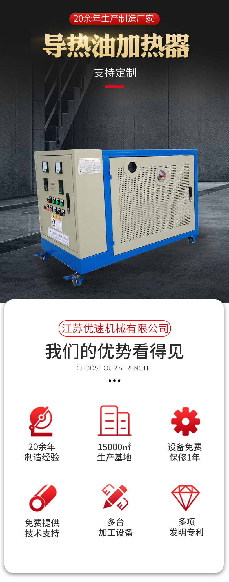 高品質(zhì)的熱源導(dǎo)熱油加熱器在常壓液相下,為熱用戶輸出最高350℃的熱油; 優(yōu)速導(dǎo)熱油加熱器均采用高精度溫控儀表,運(yùn)用PID自整定智能控溫技術(shù),控制精度可達(dá)±1℃左右溫度,準(zhǔn)確控......