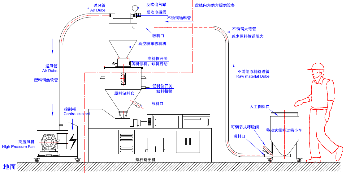 氣動真空上料機又叫氣動真空輸送機、主要針對工廠原料的輸送時,粉塵大、用人成本高、工人搬運累、環(huán)保不達標等一系列問題。